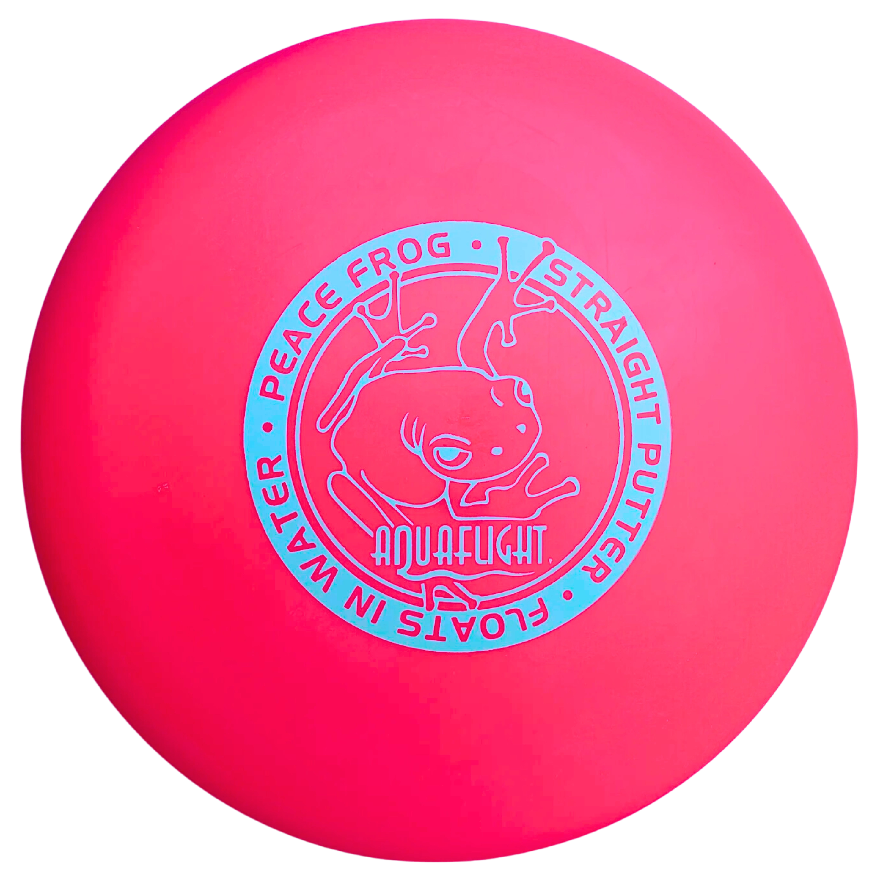 The Peace Frog is a controllable stable putter from Aquaflight's lineup. The Peace Frog has a rounded rim with a micro bead. With a bit of fade at the end, you can putt or approach comfortably with this disc. When thrown with a little power the disc will fly straight at the chains. This putter also floats in water, so have no fear of waters-edge putts!