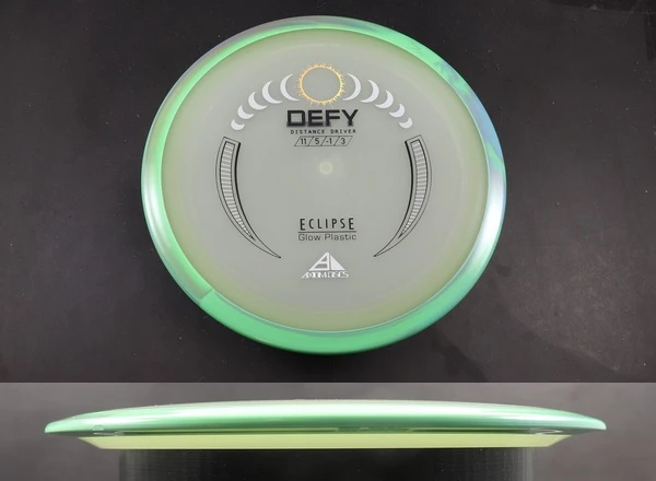 The Defy is a straight-stable distance driver from Axiom Discs. The Defy is said to be a more overstable cousin to the Photon, with a straighter initial flight and a stronger fade. This disc is a go-to in the hands of Simon Lizotte as his distance driver of choice for forehands and backhands. He leans on its overstable trusty flight to place accurate drives.