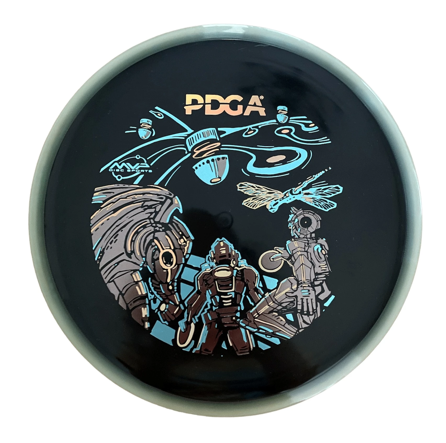 The Insanity was Axiom's first distance/control driver. This disc is slightly less stable than the ultra popular MVP Inertia. The Insanity flies like a longer crave, and will provide straight as an arrow flights for intermediate players, and slightly understable turnovers for power players.