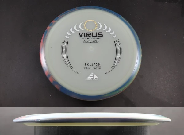 The Axiom Virus is an understable distance driver. This is the least stable of the 9 speed drivers in both the Axiom and MVP lines. The Virus is described as a "worn in MVP Impulse."