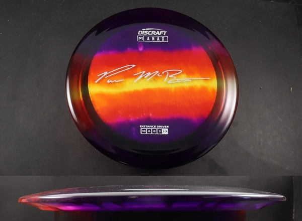 The Anax (pronounced "Onyx") is Paul McBeth's new signature fairway/power driver. This 10-speed driver will fight the wind and stay straight down the fairway before a nice fade at the end. Slower arm speeds will find this disc to be very reliable for shorter fairway drives. Big arms can expect big distance out of the Anax.