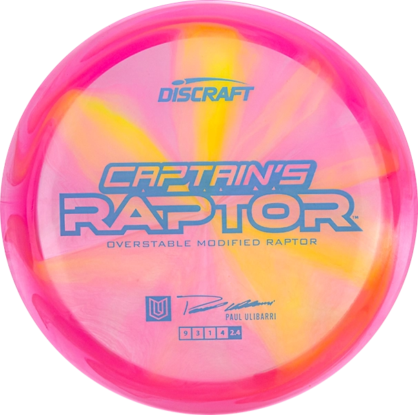 Z Swirl Captain’s Raptor pairs Discraft’s premium Z durability with beautiful swirled color patterns. This run holds up to power forehands and extreme angles with confidence, offering the same sharp fade and beefy stability that defines the Captain’s Raptor mold.