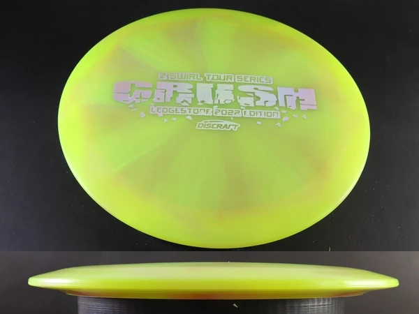 Z Swirl plastic is a swirly version of Discraft's Z plastic. It's often used with Ledgestone Edition discs. Z-Line is Discraft's most durable plastic blend. This is a hard translucent plastic that is available in vibrant colors. Discraft claims that this plastic is the choice of pros under normal conditions for slow seasoning.