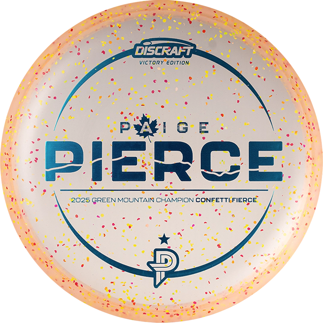 The Paige Pierce Victory Edition Z Confetti Fierce honors her Green Mountain Championship win during an impressive 15-event streak that showcased her dominance in 2025. Produced in Z Confetti plastic, this special release adds collectible value to the Fierce’s trusted straight flight and gentle finish. Players can throw one of Paige’s signature putters while collectors secure a rare piece of disc golf history.