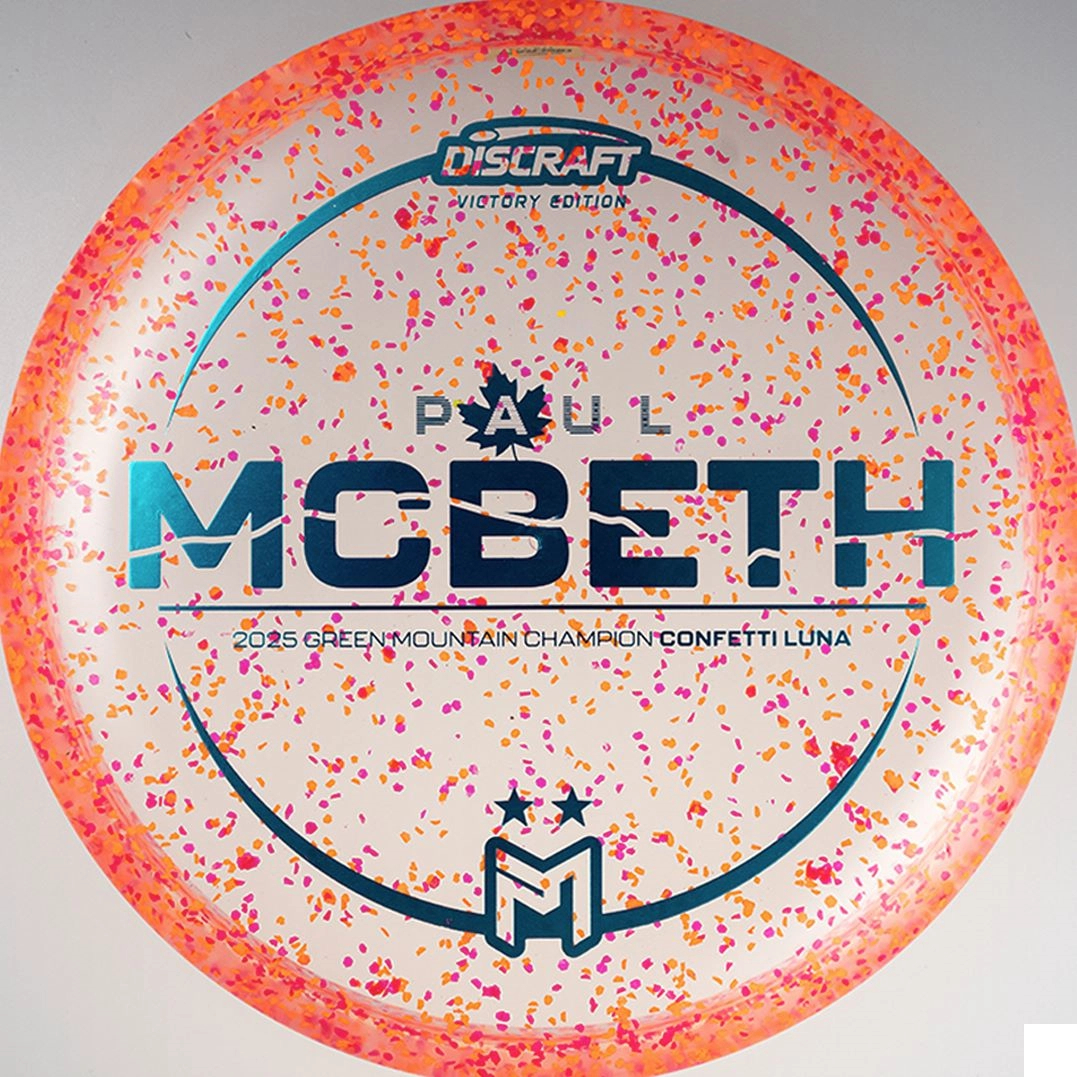 The Paul McBeth Victory Edition Z Confetti Luna celebrates Paul’s win at the 2025 Green Mountain Championship, marking his second DGPT victory of the season. Molded in vibrant Z Confetti plastic, this limited release combines the trusted flight of the Luna with a collectible design tied directly to one of McBeth’s milestone achievements. Players can bag a dependable throwing putter while collectors secure a rare edition honoring a highlight in Paul’s career.