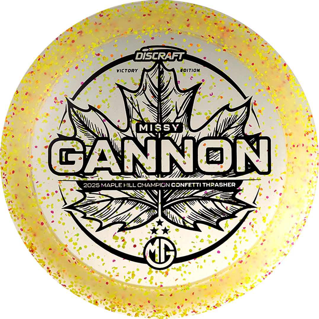 The Missy Gannon Victory Edition Thrasher is a limited release of Discraft’s high-glide distance driver, produced to mark her 2025 MVP Open win. The Thrasher combines speed and turn for effortless distance with moderate power, offering a controlled turnover or long-flex shot for advanced players. Made in Discraft’s premium Victory Edition plastic, this run includes subtle confetti flakes and a commemorative stamp. It’s the same dependable flight, with a rare collector finish.