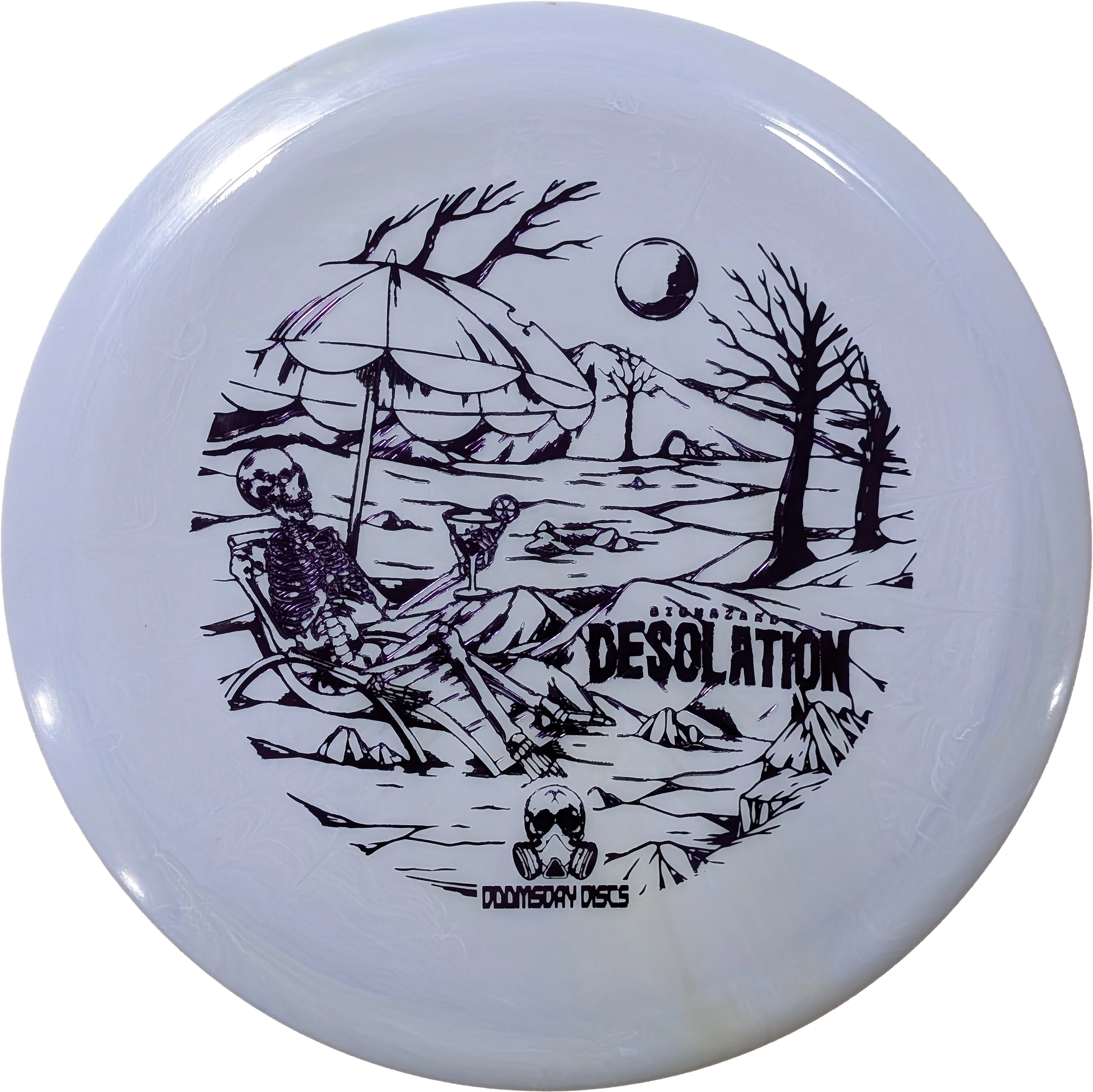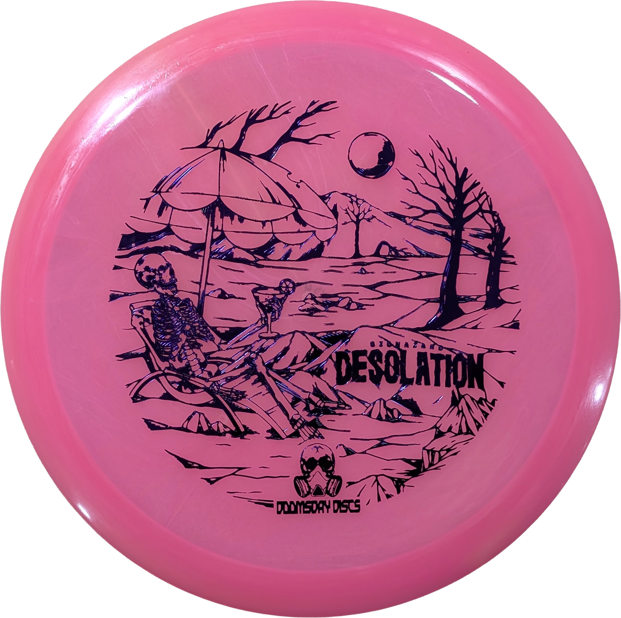The Doomsday Discs Biohazard Desolation is a neutral-to-overstable fairway driver built for smooth control and steady fade. Biohazard plastic offers a semi-flexible, grippy feel with a transparent, swirled finish that enhances hand comfort. The Doomsday Discs Desolation in this blend provides consistent release and dependable accuracy for controlled fairway drives.