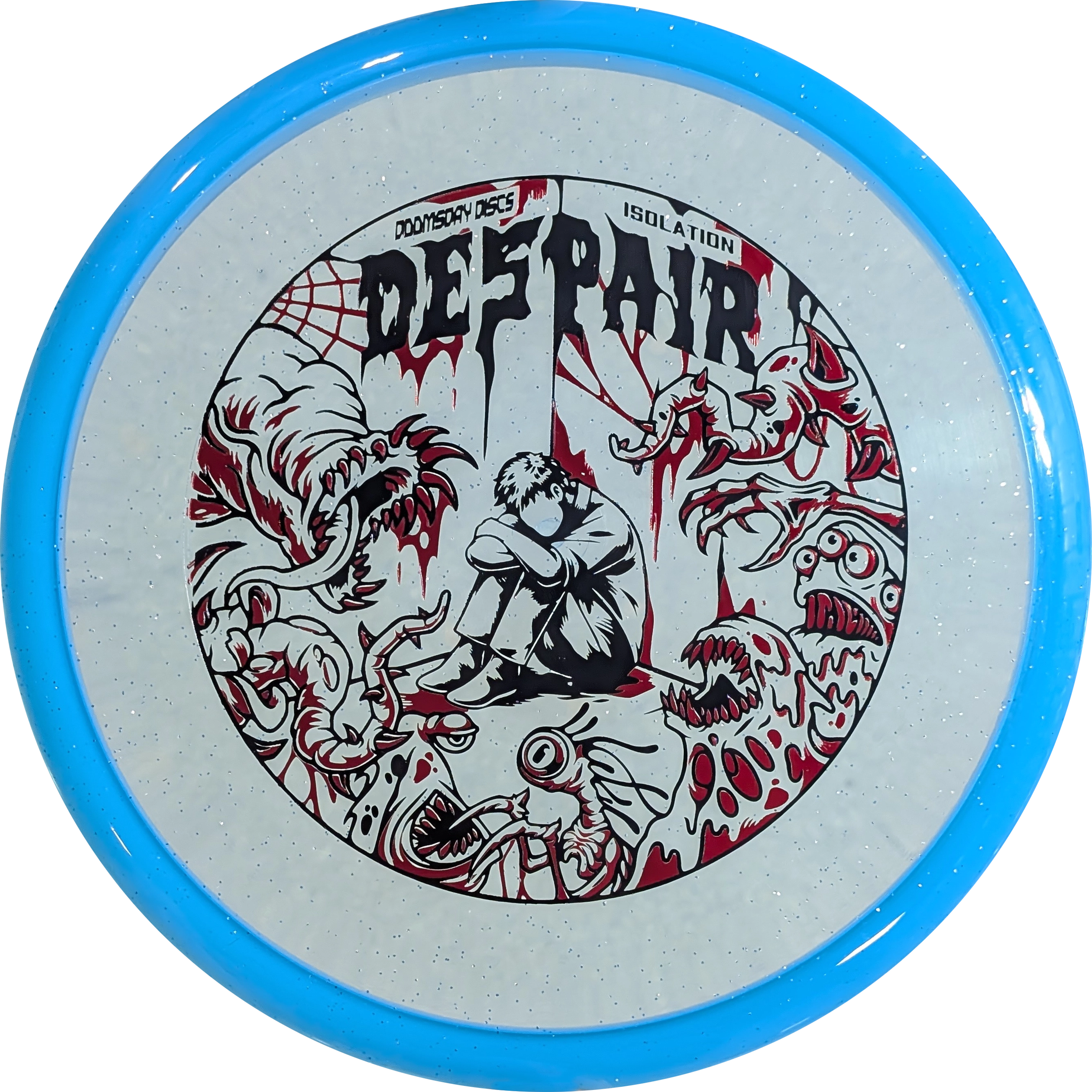 The Doomsday Discs Isolation Despair offers a balanced combination of glide and stability in a durable, premium blend. Isolation plastic feels firm with excellent grip, giving the disc a clean release and consistent flight. The Doomsday Discs Despair in this plastic provides smooth control and a reliable fade for both backhand and forehand throws.