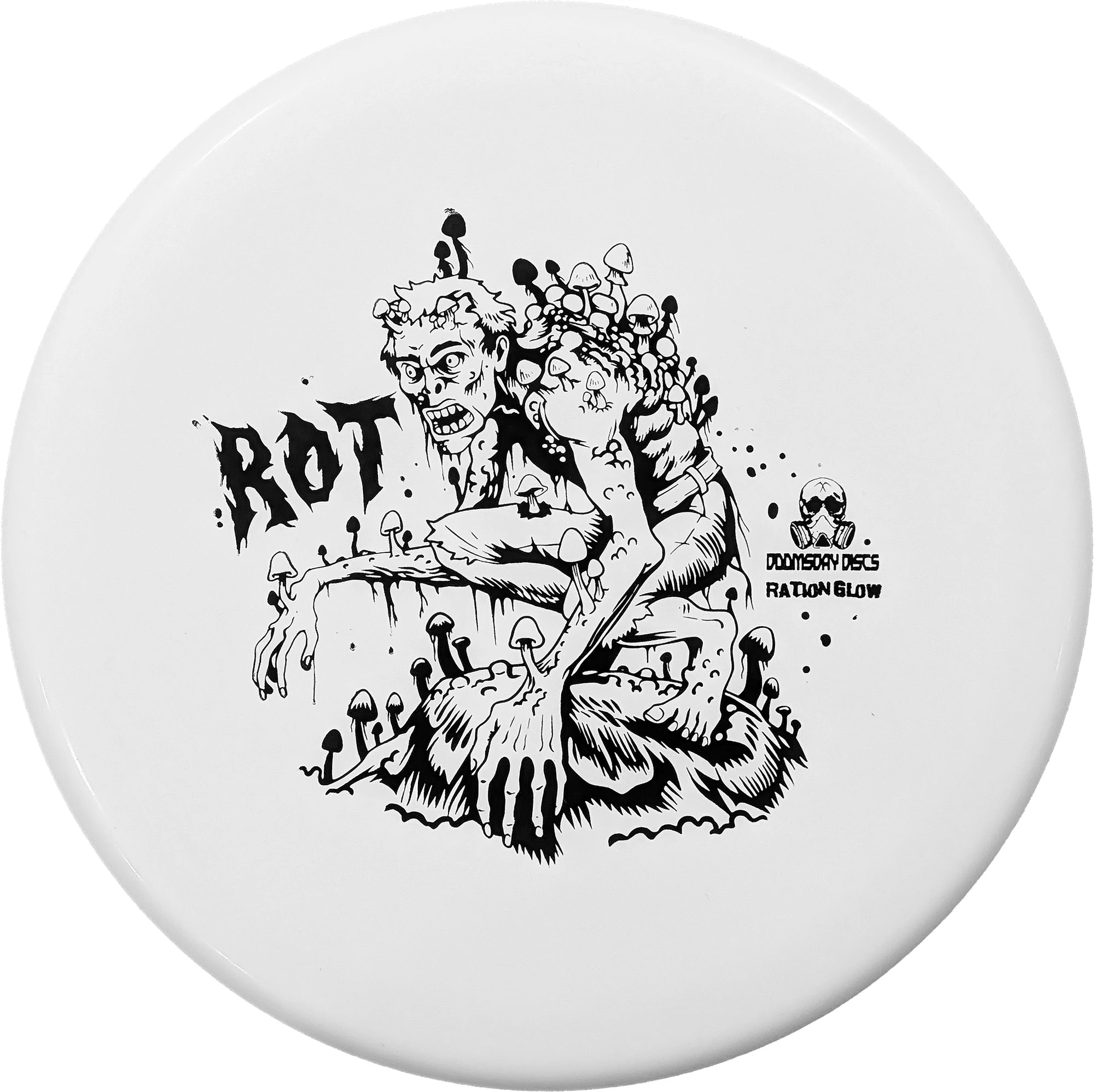 The Doomsday Discs Glow Ration Rot is a reliable overstable putter in a softer, grippier base blend. Ration plastic enhances touch and comfort, giving players confidence on both short approaches and putts. The Doomsday Discs Rot in this blend offers strong fade and dependable control at lower speeds.
