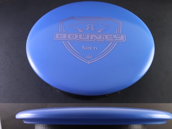 The Bounty is an understable midrange disc from Dynamic Discs. It has a shallow rim and bead, making it like a slow flying Maverick. At slower speeds, the Bounty will fly straight with very little fade. At high speeds, the Bounty will slowly turn over without burning into the ground.