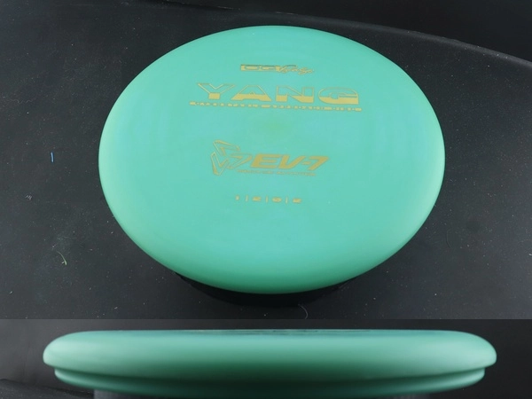 The EV-7 Yang is a slow, slightly overstable approach disc, designed as the counterpart to the Yin. Inspired by the Golden Ratio, the Yang features a concave wing radius and a big bead, creating a disc that excels at ground play. Its shallow profile and reduced glide help keep shots within 250 feet, allowing it to skip on hyzer lines and softly slide on straight approaches. With its reliable flatten and fade on anhyzers, the Yang provides controlled, consistent finishes for players of all levels.