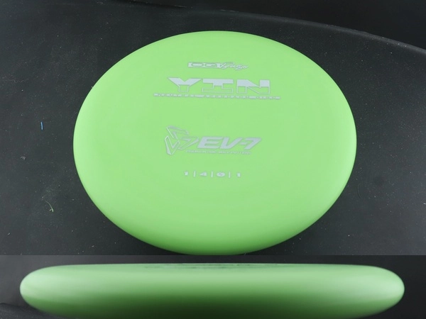 The EV-7 Yin is an air shot approach disc inspired by the concept of balance and harmony with its counterpart, the Yang. Featuring a design rooted in the Golden Ratio, the Yin has a convex wing radius, creating a neutral, beadless disc that holds any line without harsh fade. This slow and shallow disc glides smoothly toward the green, making it ideal for controlled shots within 250 feet. With its gentle finish and consistent flight, the Yin offers players a balanced and reliable option for precise approaches.