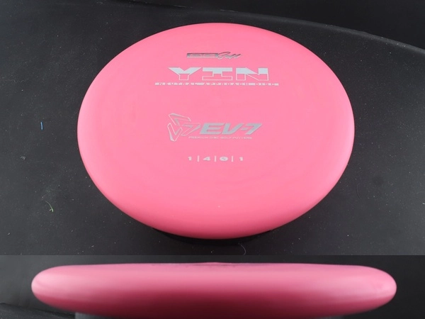 The EV-7 Yin is an air shot approach disc inspired by the concept of balance and harmony with its counterpart, the Yang. Featuring a design rooted in the Golden Ratio, the Yin has a convex wing radius, creating a neutral, beadless disc that holds any line without harsh fade. This slow and shallow disc glides smoothly toward the green, making it ideal for controlled shots within 250 feet. With its gentle finish and consistent flight, the Yin offers players a balanced and reliable option for precise approaches.