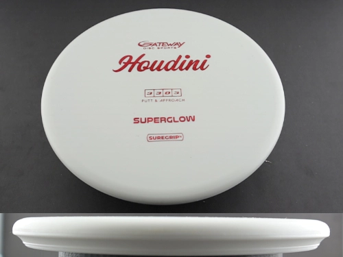 The Gateway Houdini is a reliable approach disc with a flat top design that makes it perfect for both forehand and backhand shots. This versatile disc can handle a lot of power, while also serving as the perfect touch disc for short range throws around the green. The Houdini features a unique "side-bead" which is a small bead on the slope of the rim, close to the bottom lip of the disc.