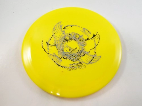 Gold Line X-Out plastic Pioneer is a factory second version of Gold Line. It delivers the same dependable overstability with cosmetic blemishes at a reduced price. The Latitude 64 Pioneer in Gold X-Out is a cost-effective workhorse fairway driver.