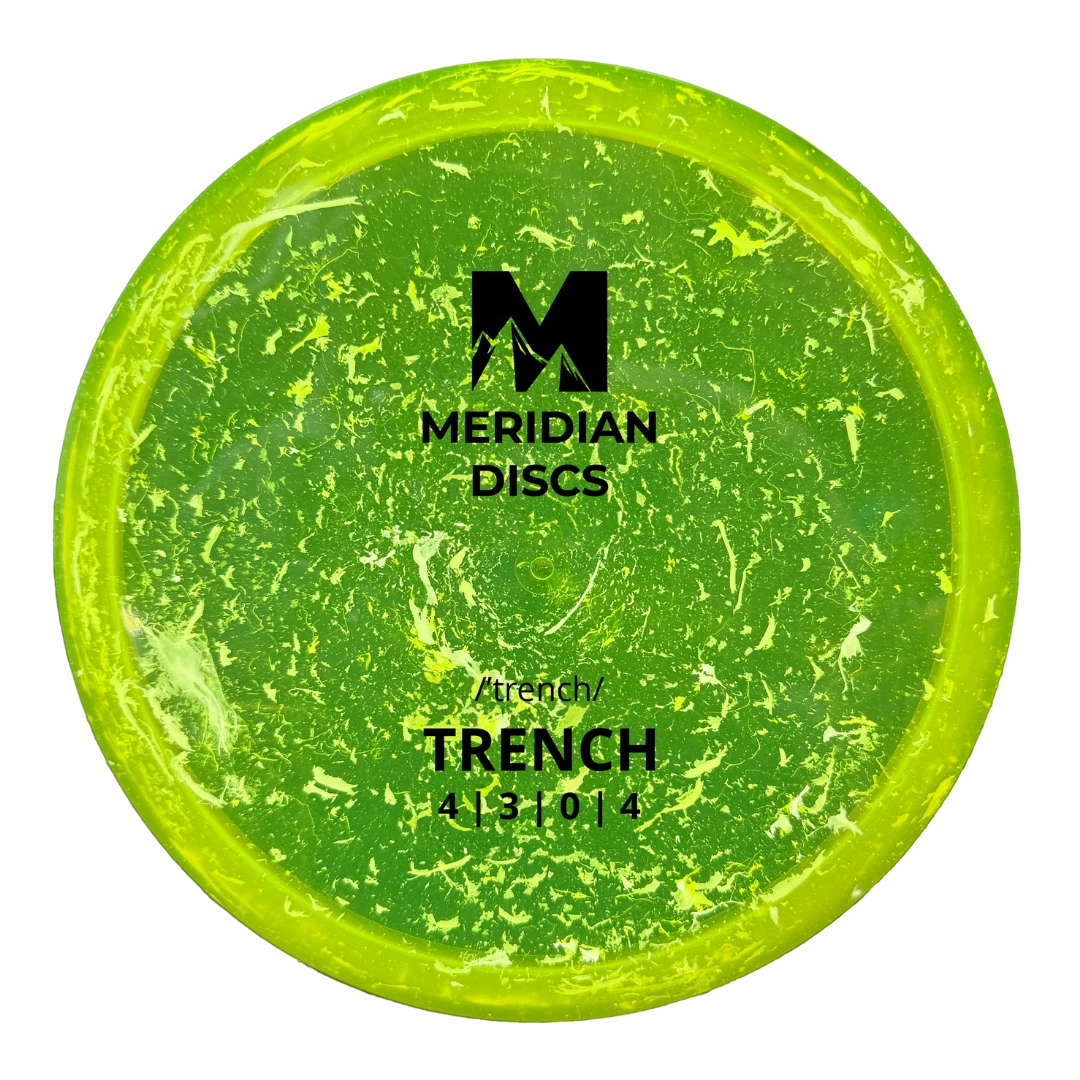 The Trench is a midrange approach disc golf disc from Meriedian Discs. It is a stable flat top approach disc. Perfect for any line you put it on.