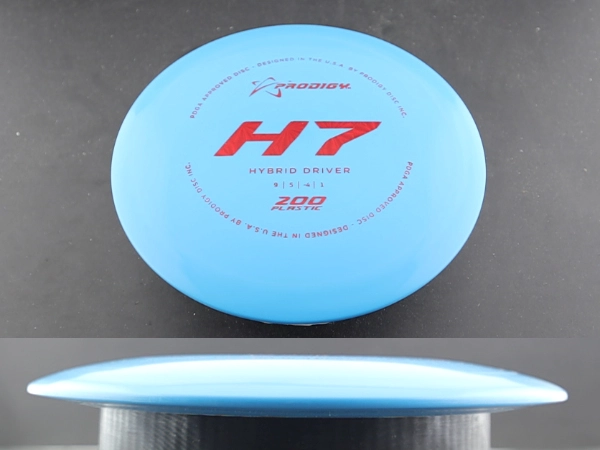 The H7 is a fast, very understable driver from Prodigy. The H7 will be a useful tool for a wide variety of players. It's understability will help beginners and lower arm-speed players throw long turnover shots. Players with more power will achieve hyzerflip turnovers and long rollers.