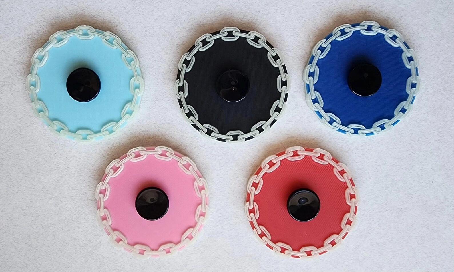 Bring personality and practicality to your game with this lightweight 3D-printed spinner mini. It features a holographic bottom, glow-in-the-dark chains, and smooth spin action—perfect for marking your lie or fidgeting during downtime. A fun, eye-catching addition to any disc golf bag.