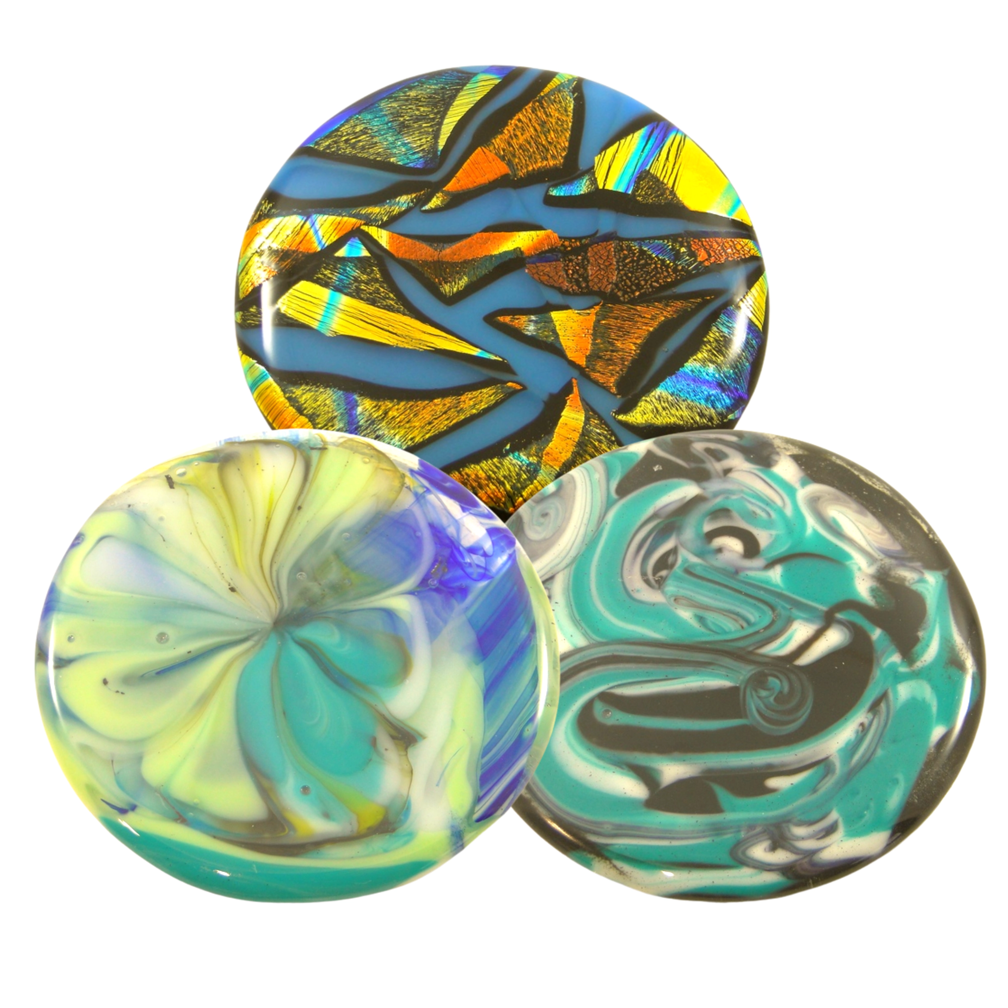 Pyrohyzer makes the most elegant mini disc on the market. These glass minis are absolutely stunning when seen in the sunlight and most of them have 3D visual effects, since the coloring and designs are embedded inside the glass. They are durable enough to use in your round, but you'll most likely want to display them as part of a collection. Each mini is handmade, and that makes each one completely unique!