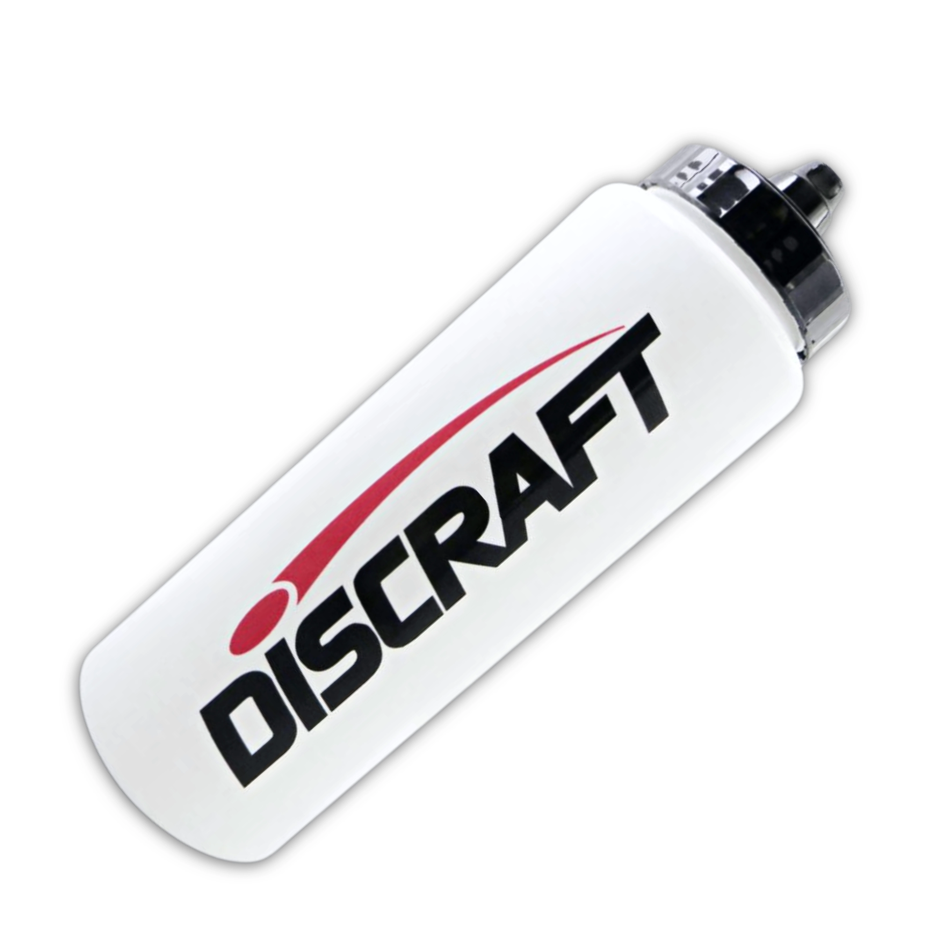 The new Discraft squeeze water bottle carries up to 22oz of water. It has the ease and durability to keep you hydrated and refreshed enough to make putts through the most blazing temperatures.