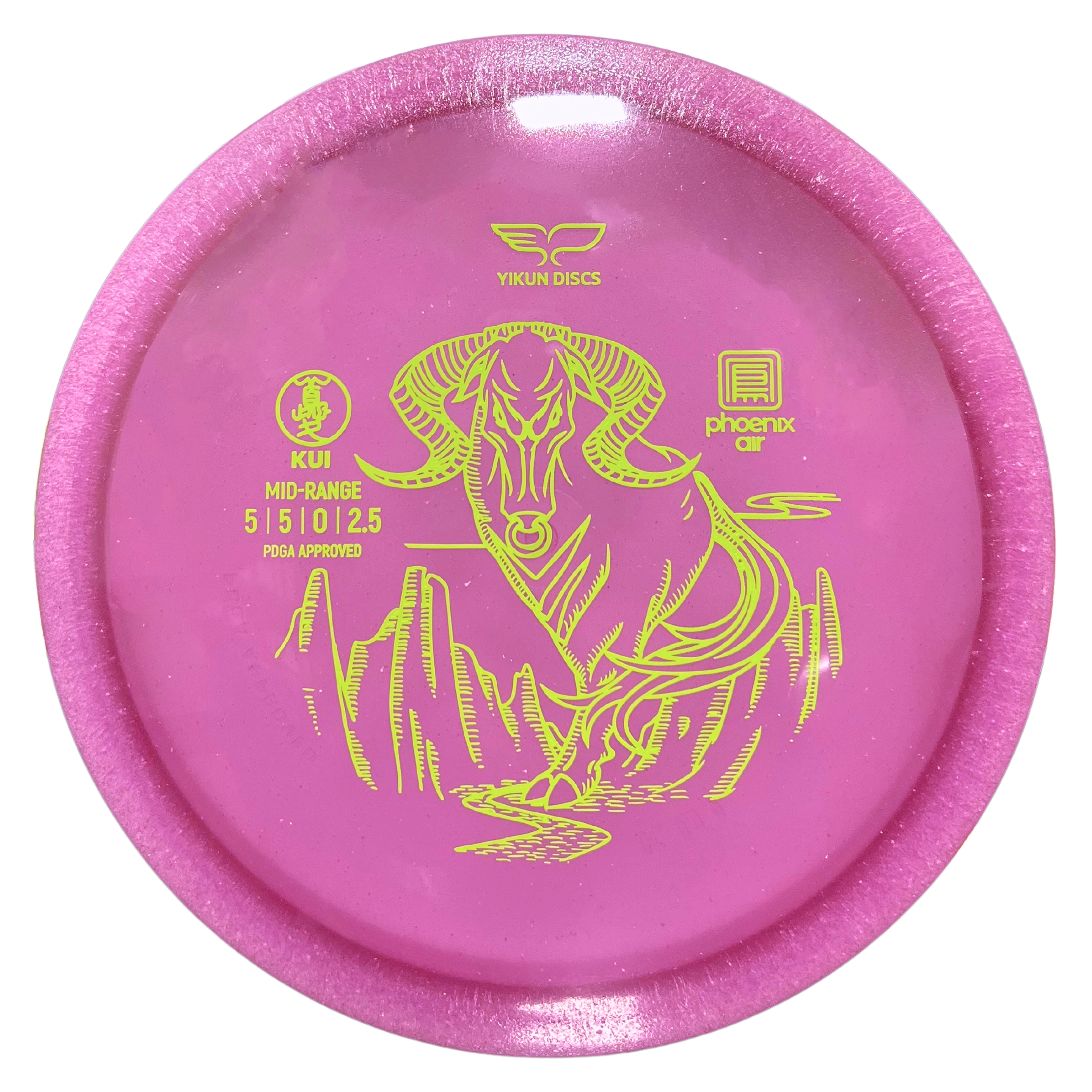The KUI, from Yikun Discs, is a high-quality midrange with a comfortable rim and domey profile for high glide and a precise, controlled flight. It has a consistent end-fade, allowing you to approach the basket with confidence, but it can also be thrown with power without flipping over.