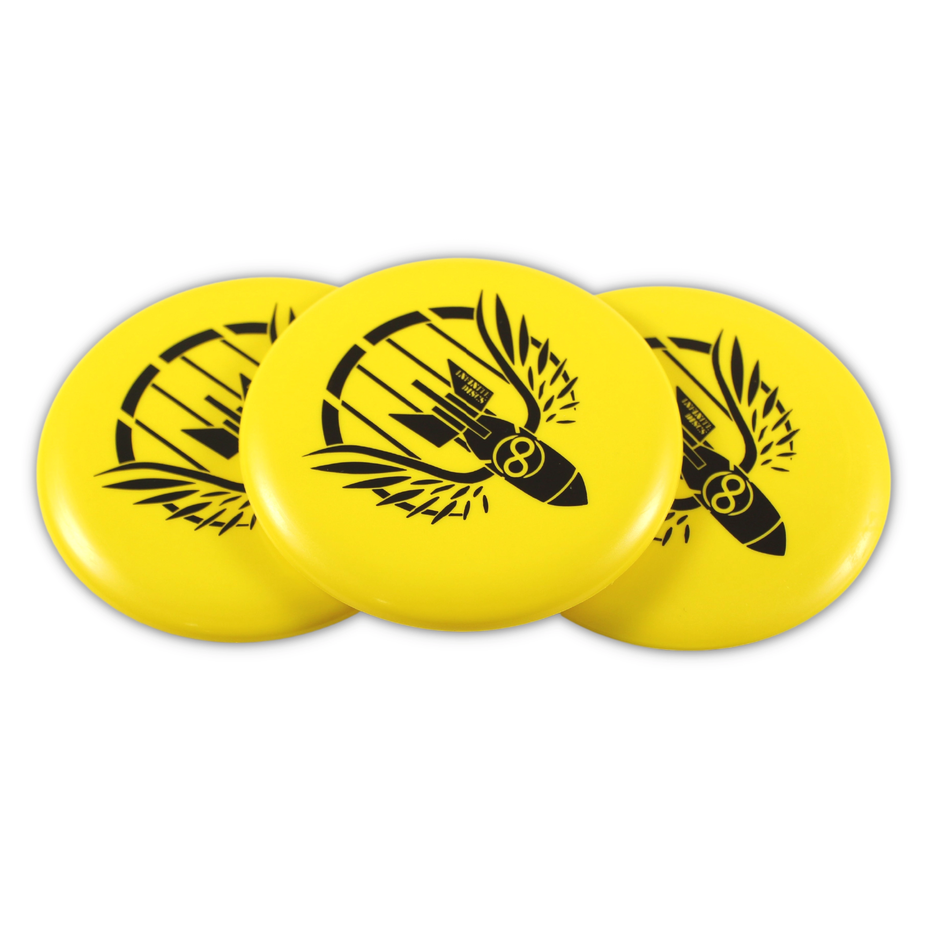 Each set comes with a driver, midrange, and putter all in yellow premium plastic.