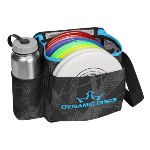 Bag Features: Holds 8-10 discs in the main compartment and 2 putters in the putter pocket. Very lightweight. Includes adjustable shoulder strap. Mesh pocket for scorecard, pencils, and minis. Drink holder will hold your average water bottle. Discs and water bottle are not included.