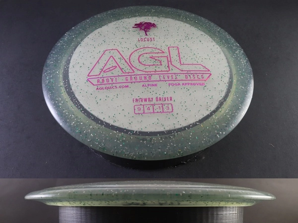 The AGL Discs Locust, the newest fairway to our lineup, is a 9-Speed but is also an undercover distance driver. The Locust is quickly becoming one of AGL's best selling discs of all time. We are truly amazed at how FAR this disc flies, and it has been called the farthest flying disc in our lineup. This disc sports flight numbers of 9/4/-1/3 which makes this disc a very versatile fairway driver. The 4 Glide and -1 Turn mean this disc can stand up to some headwinds and still fly true. The Locust also provides that consistent and predictable left to right finish that can make all the difference when lining up a long drive. Whether you are looking for that perfectly placed drive, or just need more confidence in your throw; the Locust will be sure to take your distance game Above Ground Level.