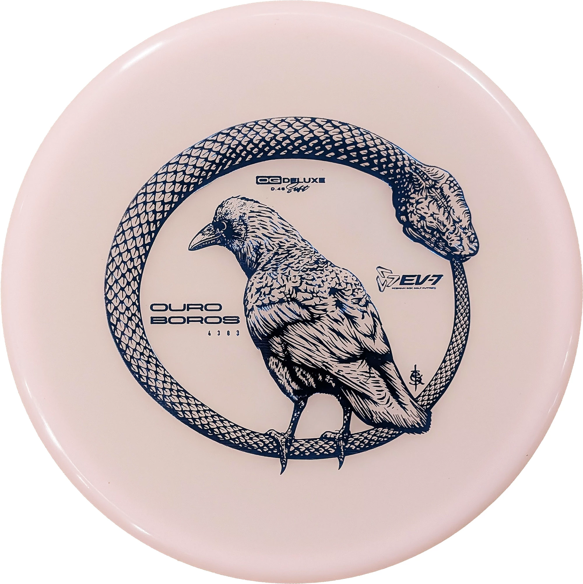 The EV-7 Ouroboros is an overstable approach putter designed for reliable, torque-resistant flights. Developed with input from Dr. Charlie Booras, it offers a touch more stability than discs like the Zone while maintaining controlled distance and consistent finish. It handles power well and holds its line before finishing with a strong, dependable fade, making it a trusted option for approach shots in the 280 to 320 foot range.