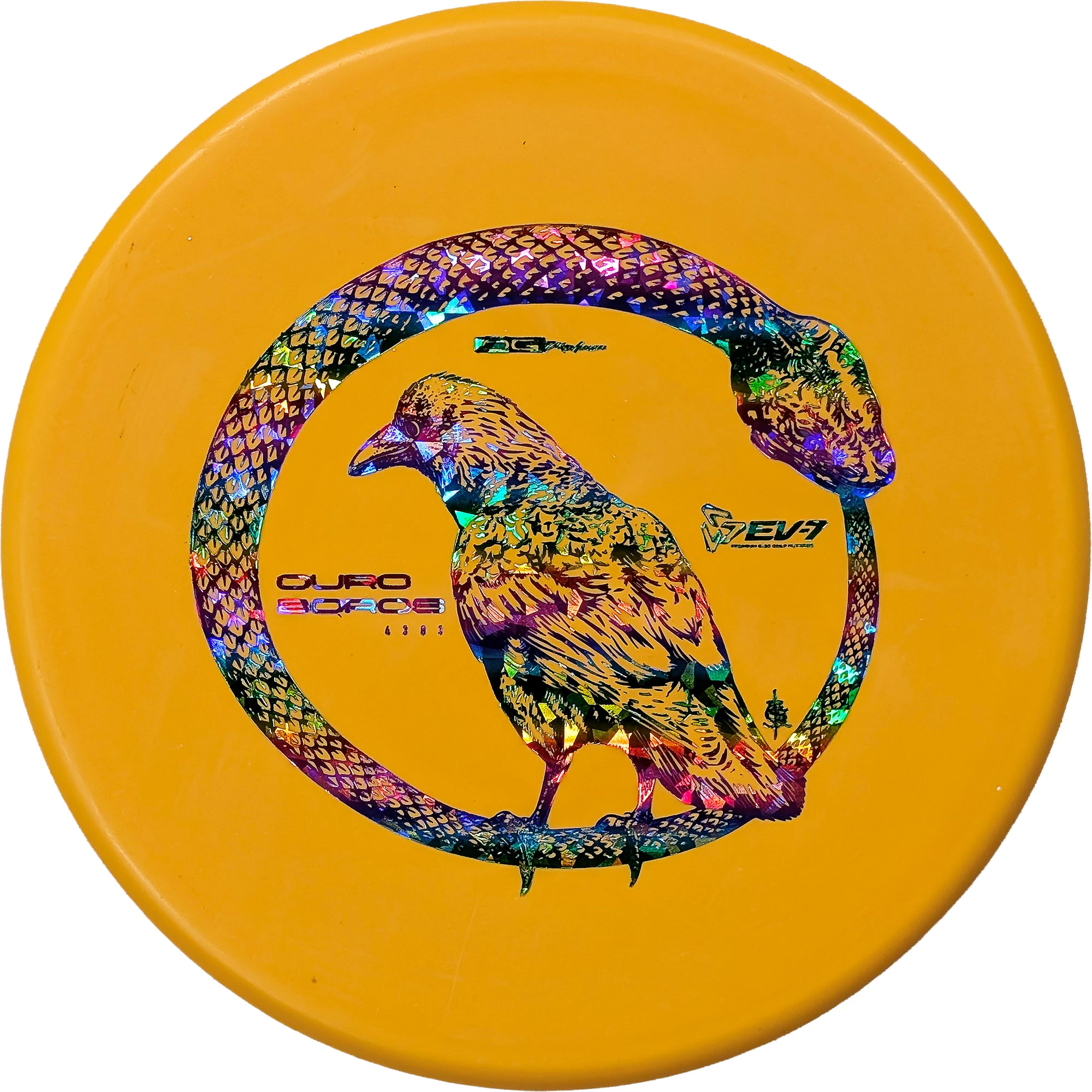 The EV-7 Ouroboros is an overstable approach putter designed for reliable, torque-resistant flights. Developed with input from Dr. Charlie Booras, it offers a touch more stability than discs like the Zone while maintaining controlled distance and consistent finish. It handles power well and holds its line before finishing with a strong, dependable fade, making it a trusted option for approach shots in the 280 to 320 foot range.