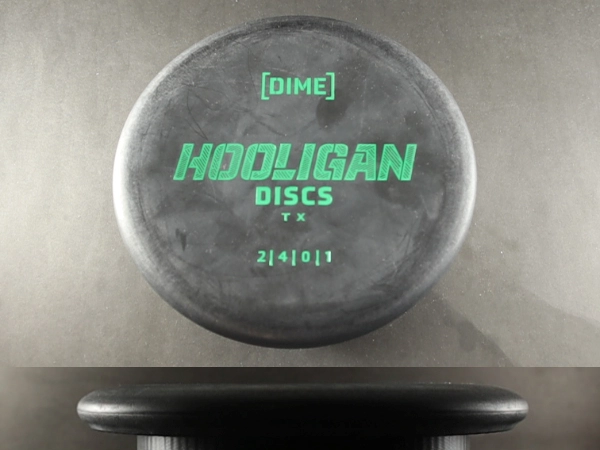 The Hooligan Discs Dime is a beaded putter with flight numbers 2 / 4 / 0 / 1, offering a straight flight path with a touch of fade at the end. Known for its impressive glide and reliable stability, the Dime covers both putting and approach situations, making it an essential addition to any disc golfer's bag.