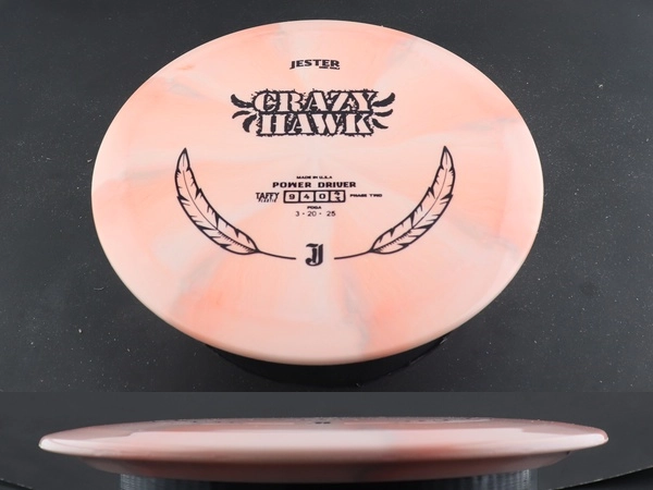 Noodle arms beware-- this disc is 100% pure beef! The Crazy Hawk by Jester Disc Golf has a built-in fade that will bring you back around any obstacle. It is a control driver that can handle the power of intermediate and advanced players whether thrown backhand or forehand. Can you you handle it?