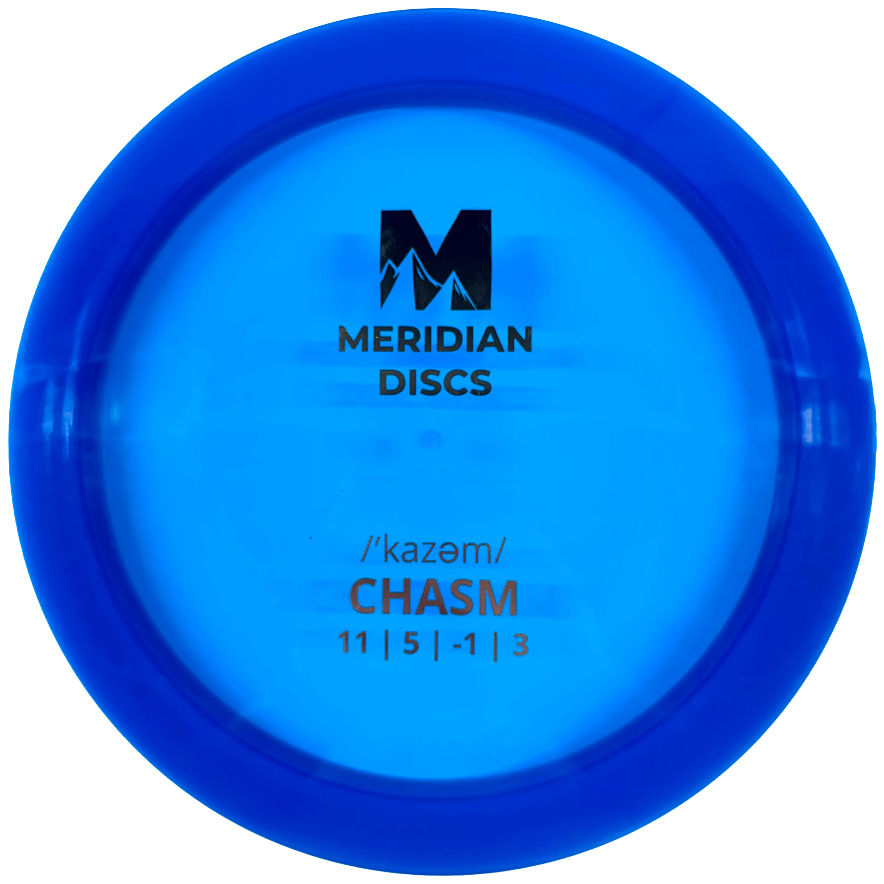 The Chasm is an overstable Speed-11 distance driver by Meridian Discs that offers a nice crossover between control and distance and can handle powerful throws to provide a little turn before the dependable end-fade.