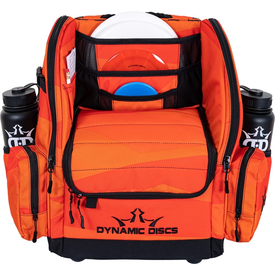 The main disc compartment of the Commander bag has space for 20 discs. An additional 2-4 discs can also be stored in the easy access vertical storage compartments. The DD Commander also features large dual water bottle holders, dual cell phone storage pockets, a mini marker pocket, a stool/umbrella strap, and dual large pockets perfect for holding a jacket or towels, and other accessories.