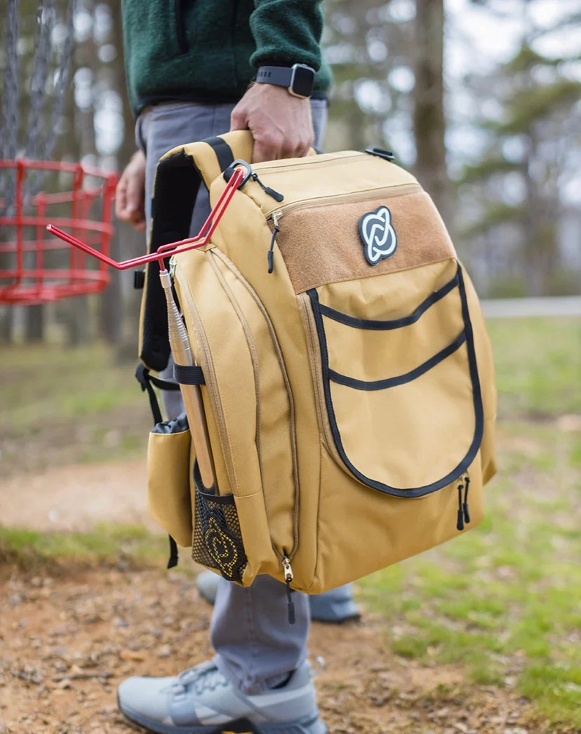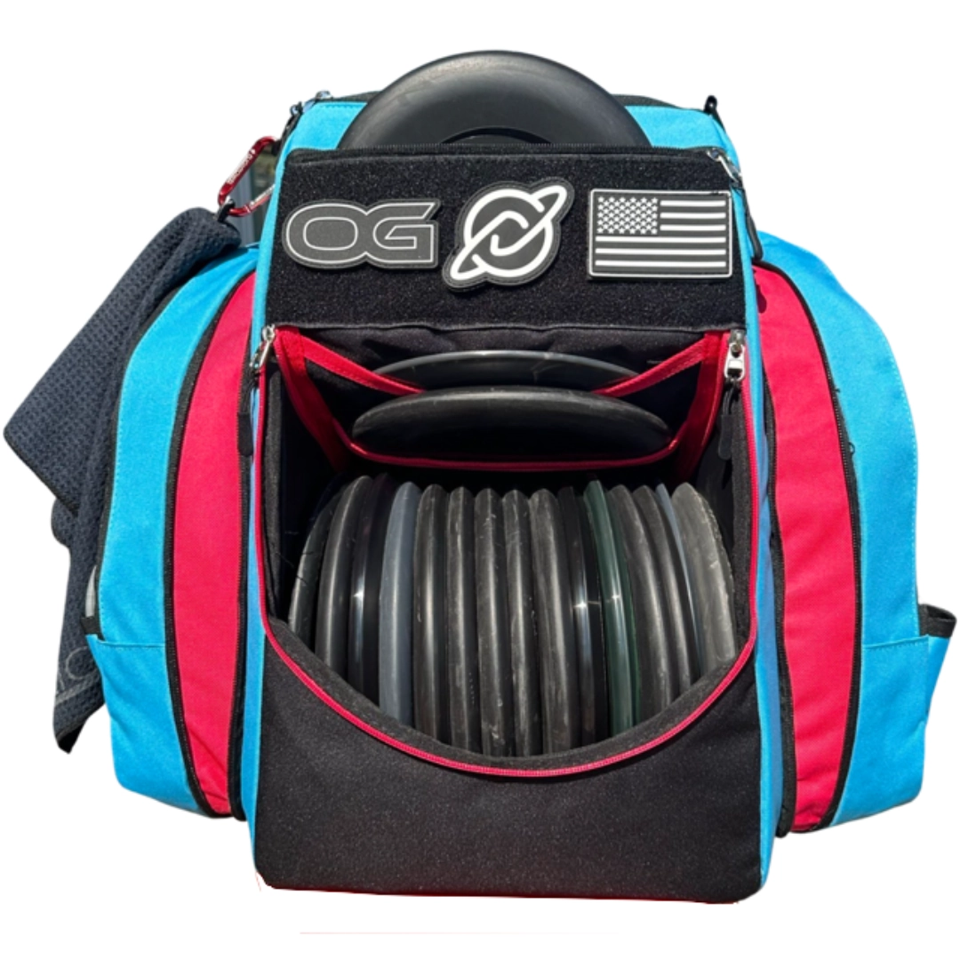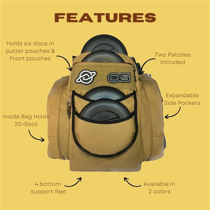 The Discology OG Bag is made out of durable canvas material. It is tear, water, and scratch resistant. It has a 26+ disc capacity; 2 putter slots on the front panel, with a large main compartment. It features two large side pockets for additional storage of other course necessities. It provides a functional and stylish look, you can even add your own patches to the velcro section on the front.
