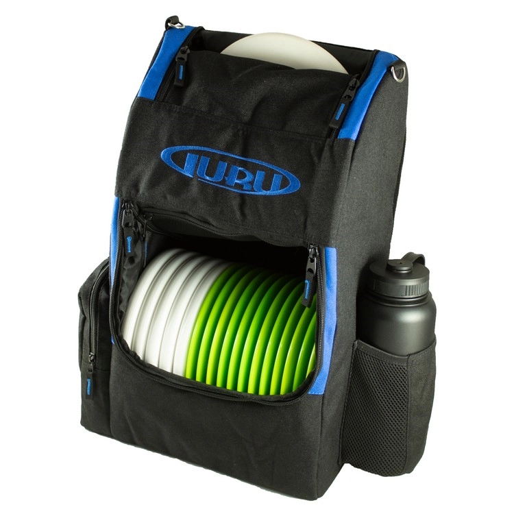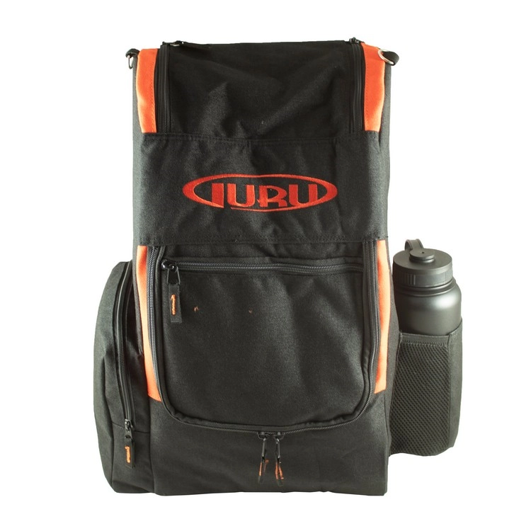 The Guru Bifrost Backpack is designed to be your daily disc golf bag. This can hold 20-22 discs, all the while providing room for other items. It features a water bottle pouch, a side zipper pocket, a putter pouch on top, and a pocket on top.