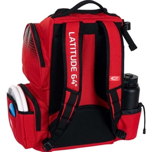 The Latitude 64 Luxury E4 is the newest edition of the Luxury Bag lineup. The E4 is one of the most robust and luxurious bags on the market. It is made to carry about 20 discs, but it can carry up to 30 if all of the pockets are utilized for discs. On one side there is a putter pocket, and on the other, a water bottle holder. The umbrella holder is made to carry a closed or open umbrella. There are plenty of pockets and spaces to hold all of the gear you need to have a succesful round of disc golf.