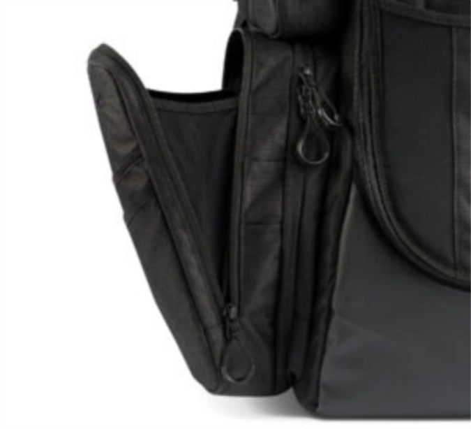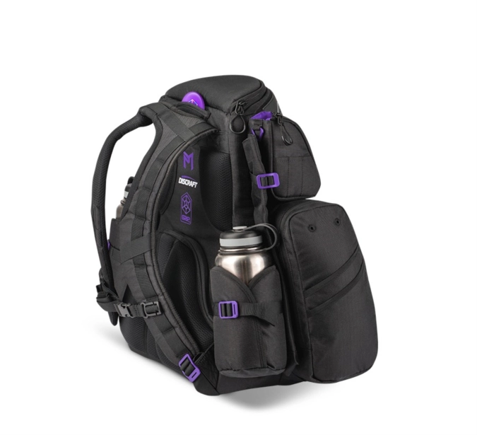 Main compartment holds 23 discs with a 5-putter quick-pull top pocket