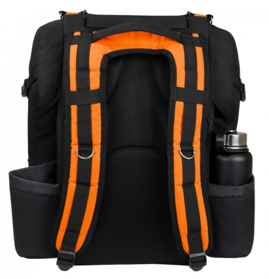 This is an excellent backpack. Just upgraded from an Innova Adventure. This bag holds plenty of discs, love the handle on the top for picking up. Its very stable and stands up on its on. It is very lightweight even with 20+ discs. The 2 snap buckles on each side are perfect for carrying a seat during tournaments. Defiantly recommend this back.