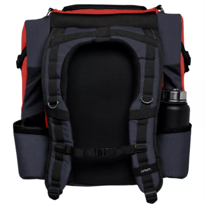 Great to have a bag that can hold all of my discs now (23-24) the only down side is that the inside bottom part of the disc holder comes off too easy with the Velcro. I'm 5'11 and I don't have any issues with plastic digging into my back.