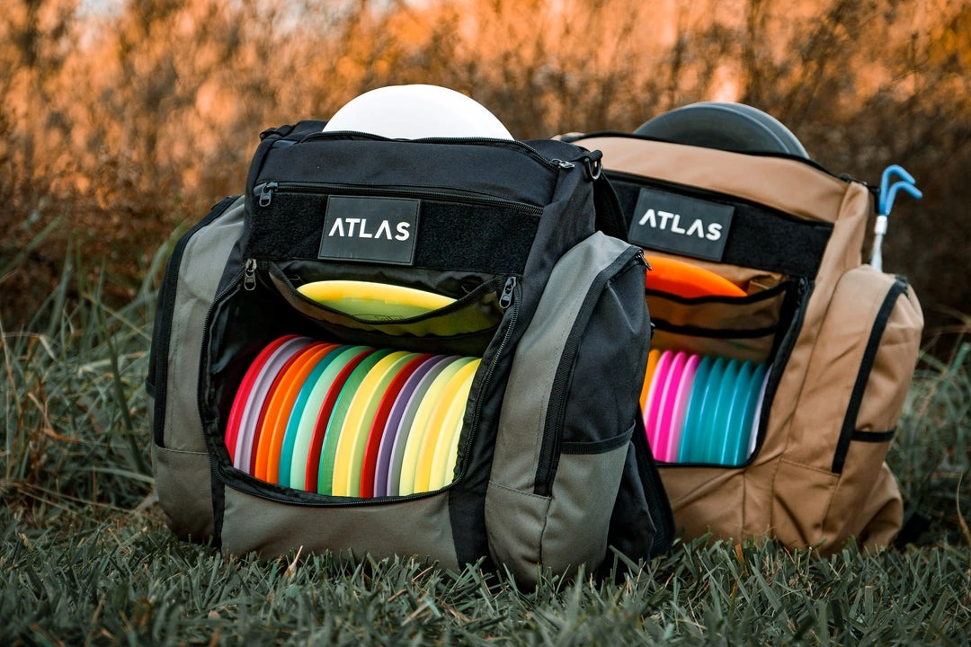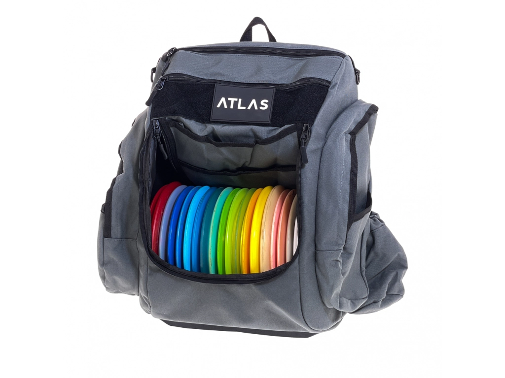 The Pioneer, by Atlas Disc Golf, allows you to carry all the discs, accessories, and gear you need for your disc golf rounds or tournaments while remaining affordable. The Pioneer is designed for the player ready to take the next step with their game.It is assembled with extra strength and has reinforced pseudo supports in the putter and side pockets. It also includes a velcro loop to carry retrievers, umbrellas, and stools in a convenient, comfortable location. The Rigitech Canvas material, pseudo support for the main compartment, and reinforced base provide a quality bag with a functional approach.