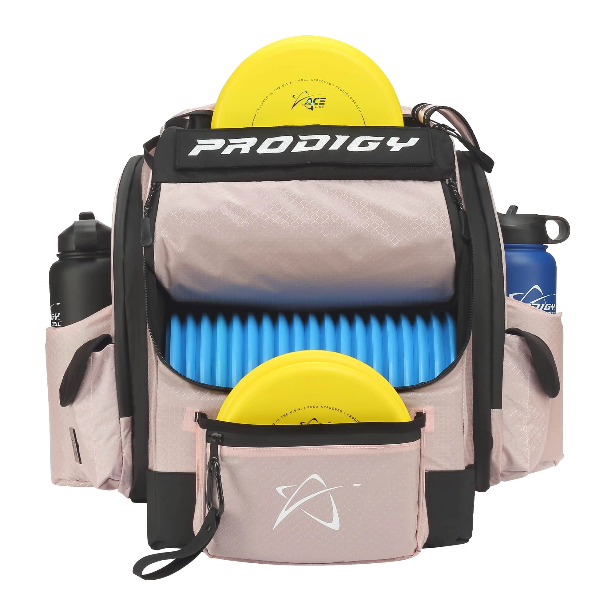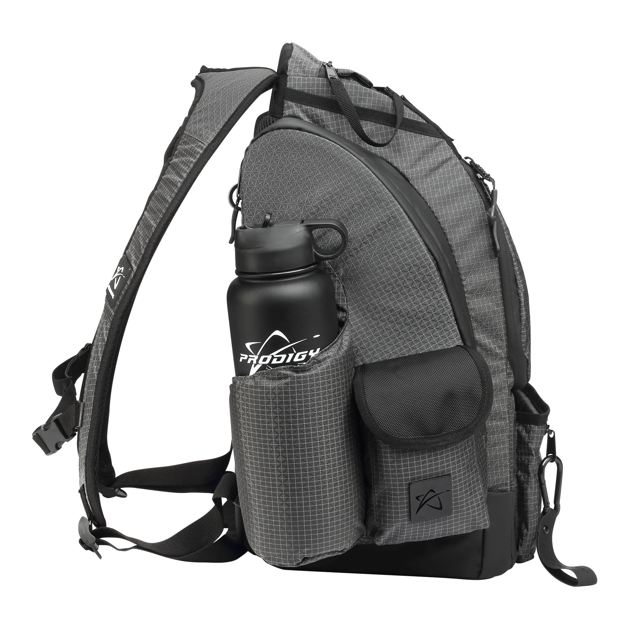 The Prodigy BP-1 V3 is the newest iteration in the BP-1 lineup. It features a TON of space for all of your discs and accessories. The front section holds 20-26 discs and the top putter compartments holds up to 4 putters. You can fit an additional 10 discs, or various accessories in the side pockets.
