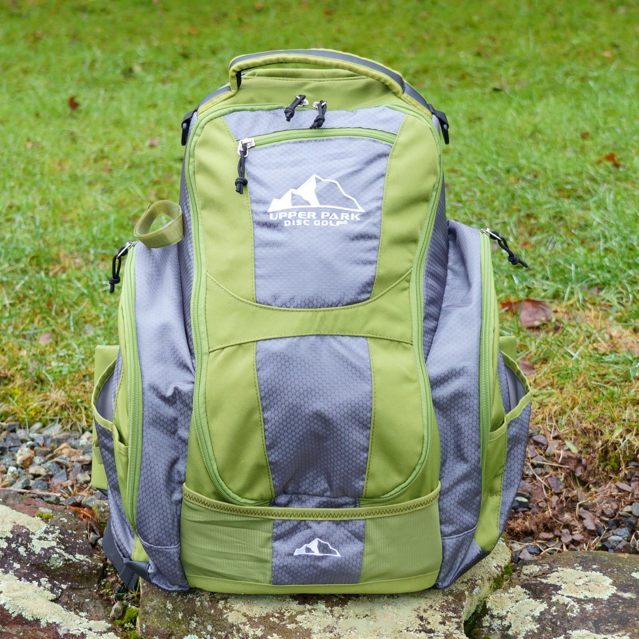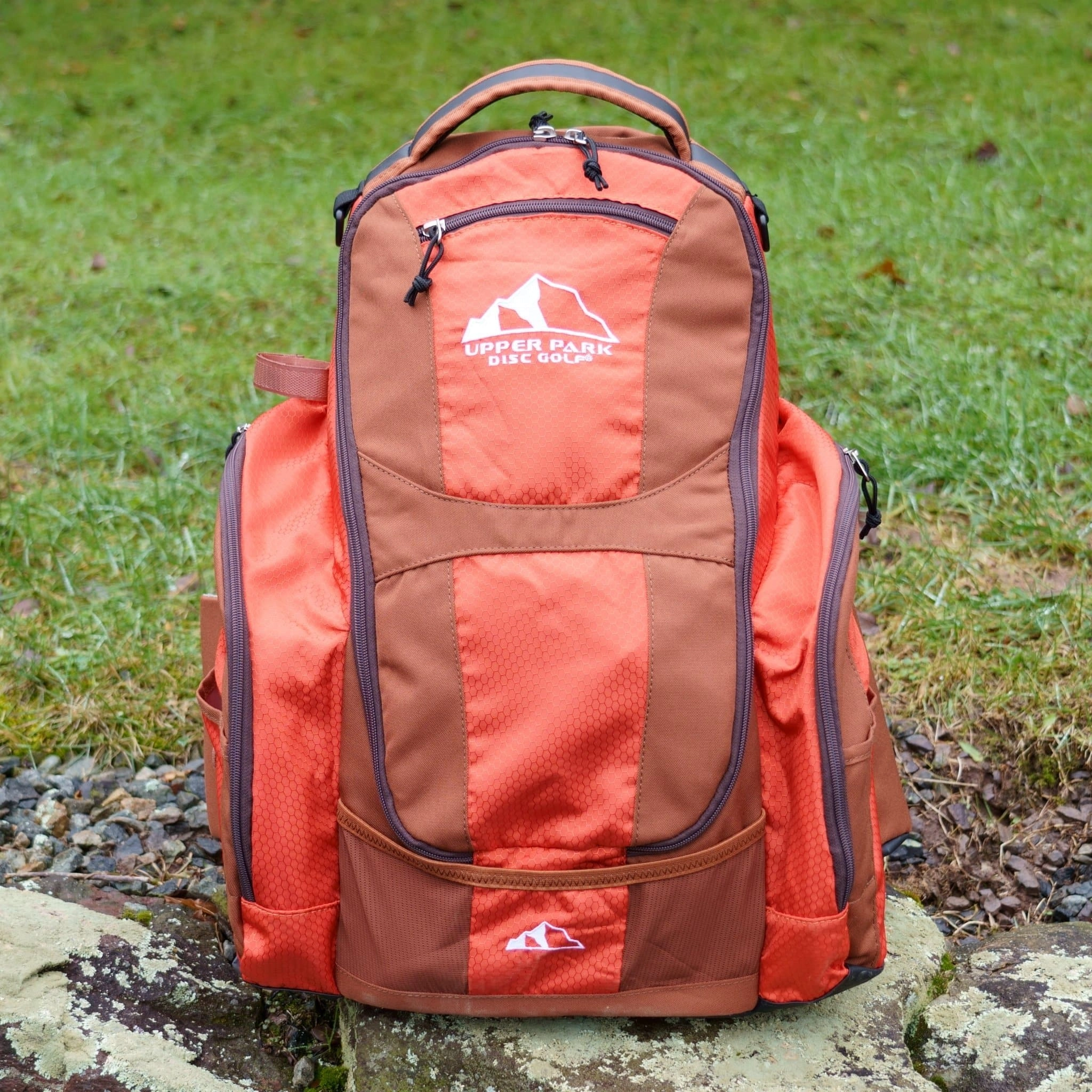 - Extra Large Storage: The Rebel disc golf backpack is the roomiest of Upper Park's entire bag line. It hold over 30 discs, it also has a large side storage area, front storage area, interior sidewall pockets, detachable Velcro compartments, deeper pockets for mini discs, a compartment for bottles, and a Velcro strap for a chair or umbrella.