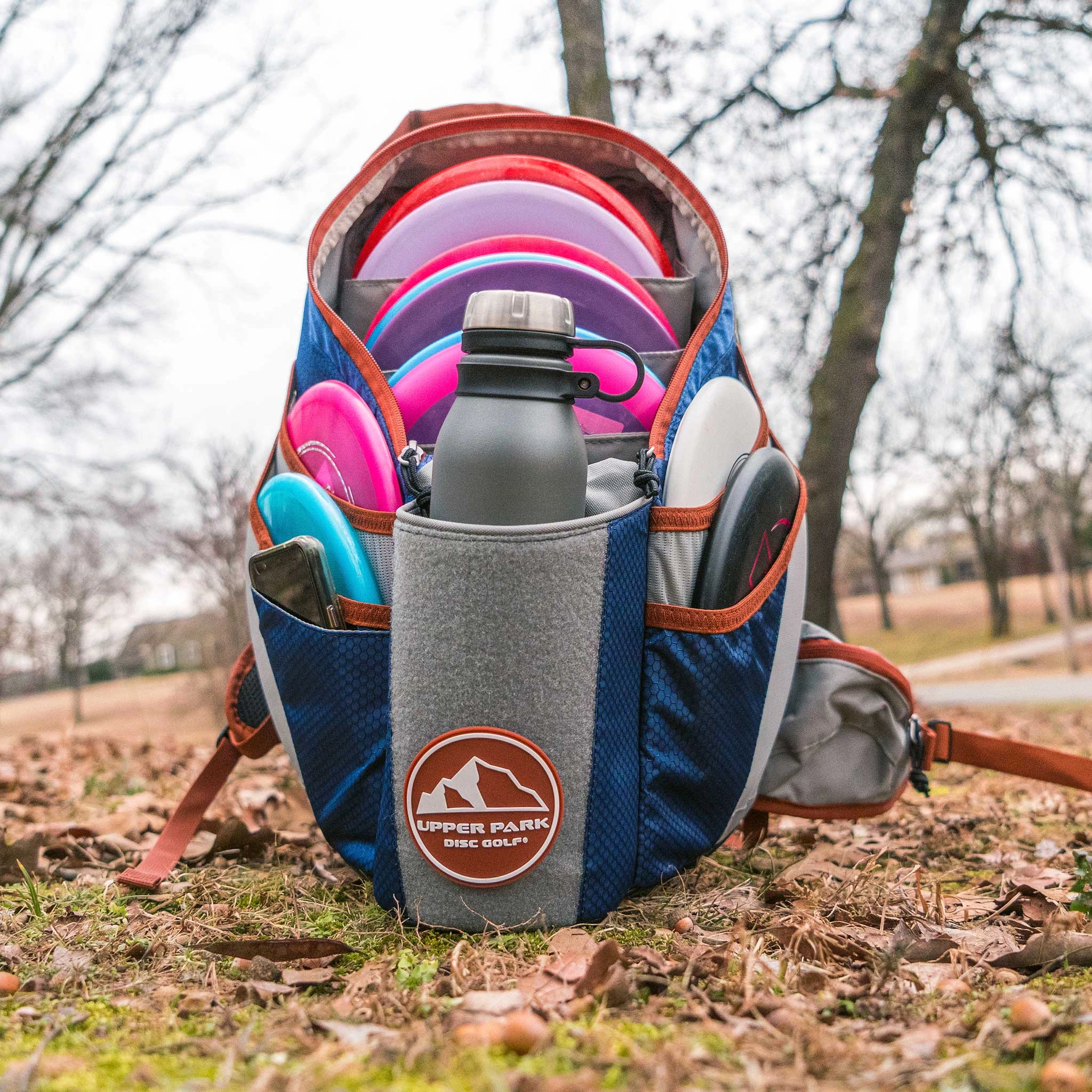 This is an excellent bag for any weather. It features a 40 oz insulated water bottle holder and a ventilated back panel for those hot days. It has a waterproof base and included flap-access rain fly. And don’t be afraid to get a little dirty with the 4 individual feet and an abrasion resistant, waterproof base that will keep your bag upright and your discs at the ready.