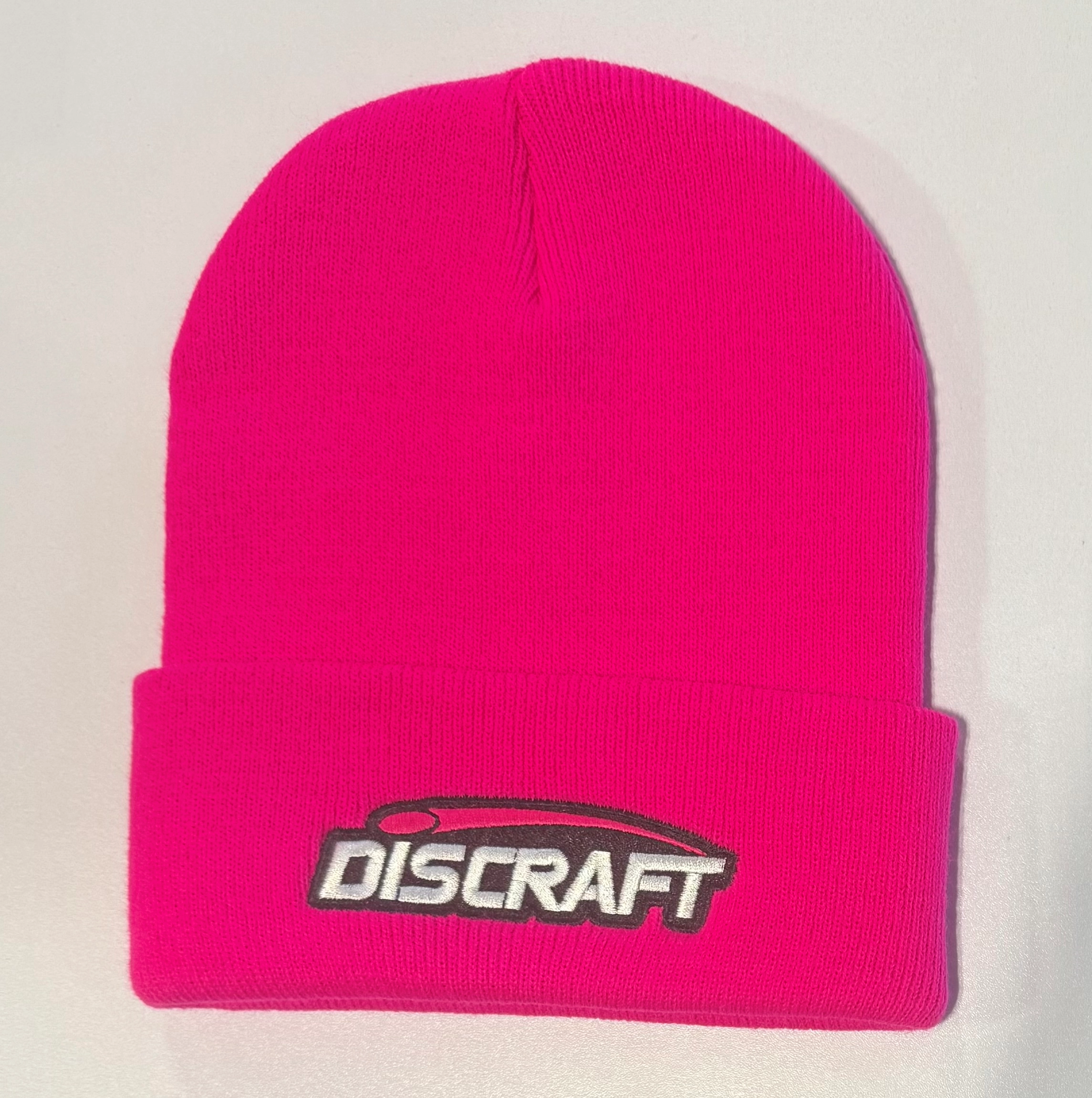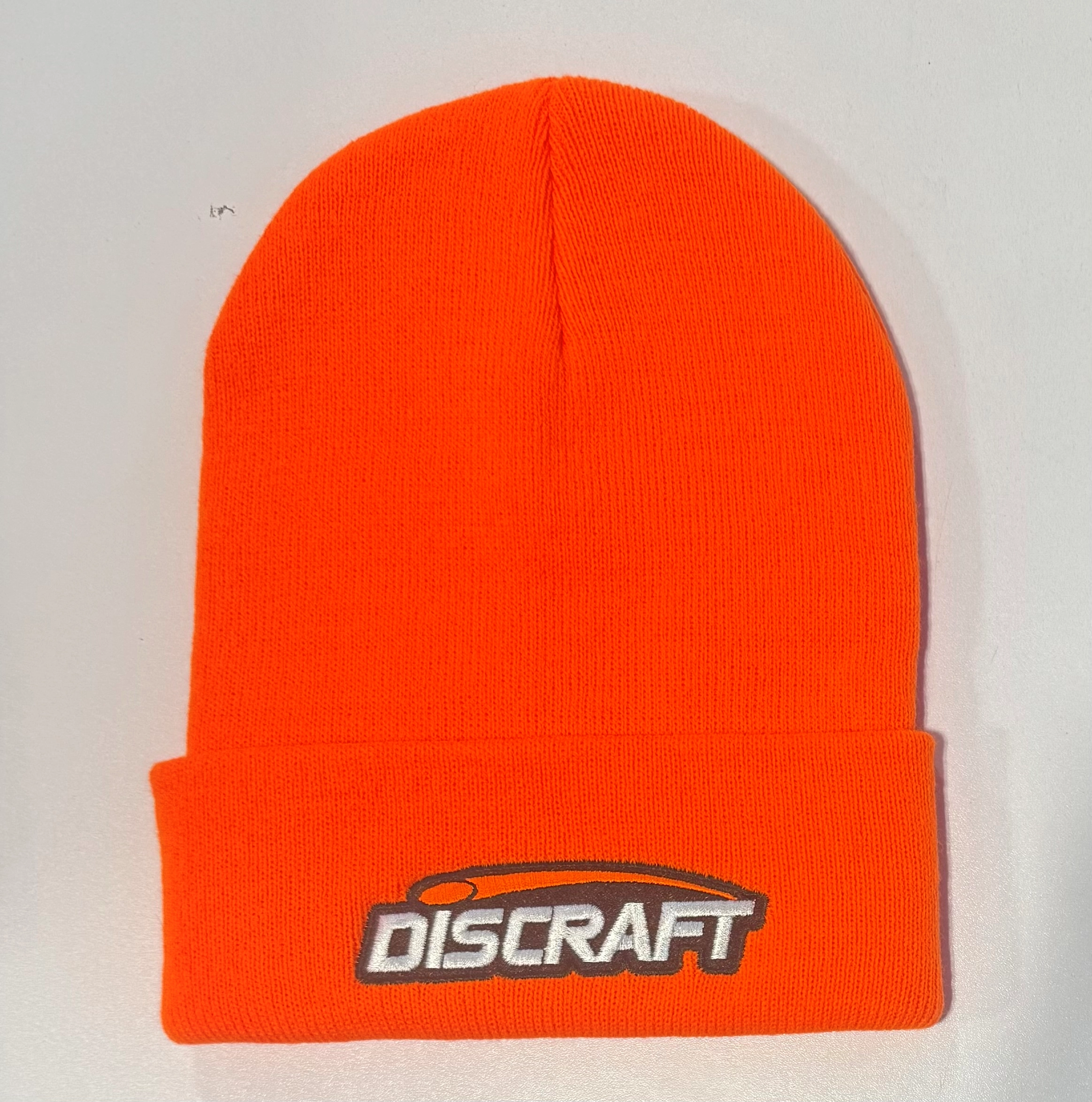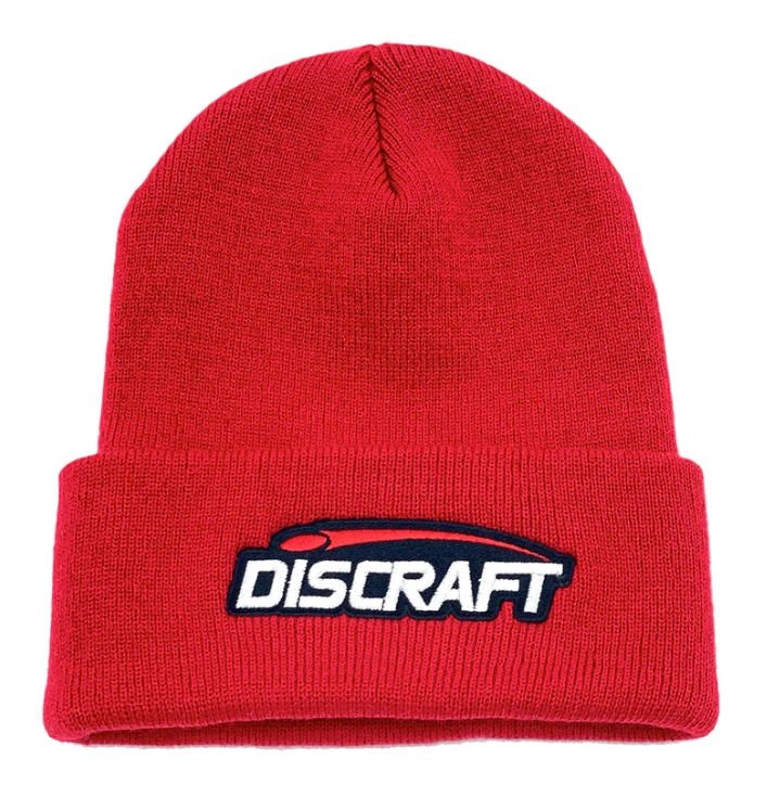 Show off your Discraft pride and stay warm with this soft knit beanie — perfect for cold-weather disc golf or everyday wear.