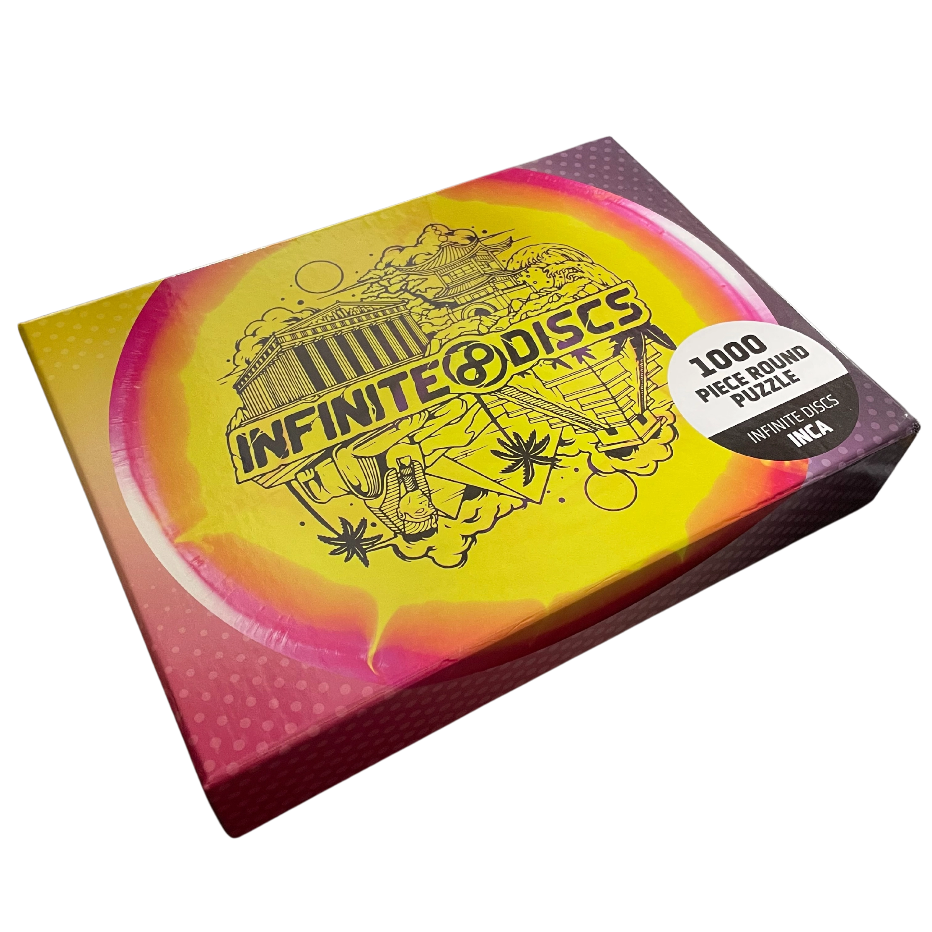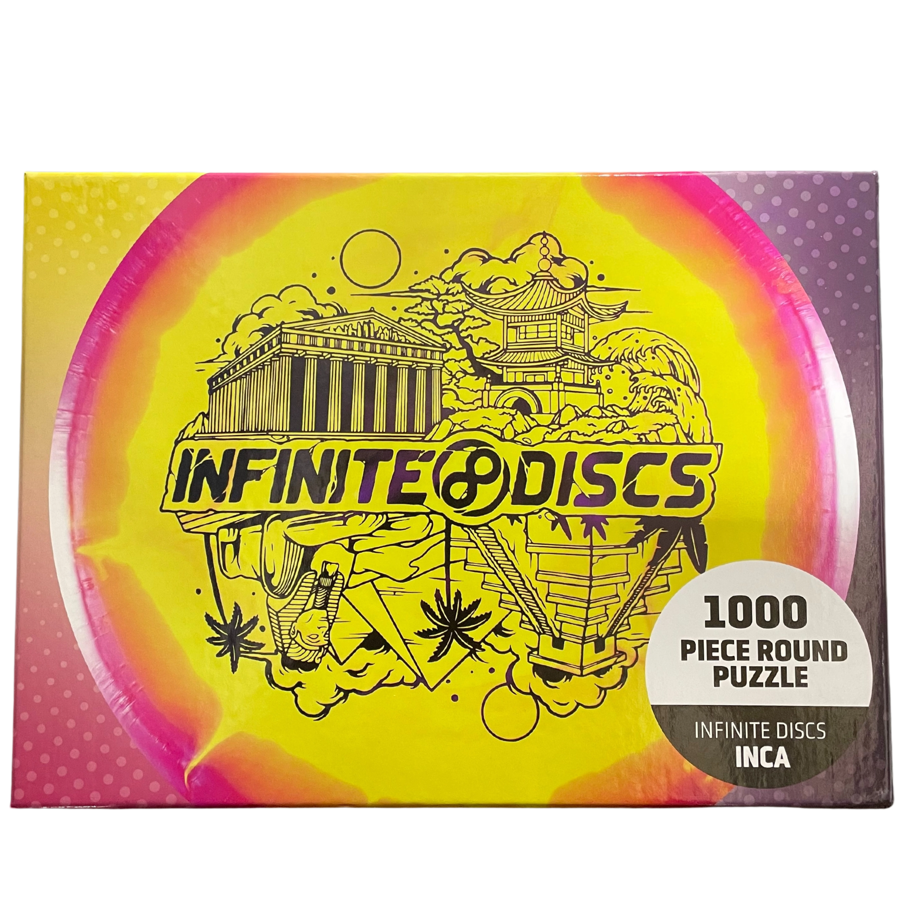 This unique 1000-piece puzzle is a fun challenge because it is a round puzzle that recreates the image of a beautiful Halo S-Blend disc featuring the Infinite Discs Culture Stamp. The puzzle box includes a round poster that can be used as reference when putting the puzzle together. When you can't be outside throwing discs, gather with your family and friends around the table and build a beautiful disc.