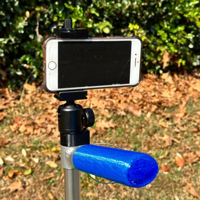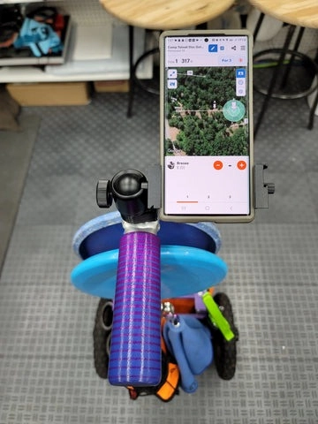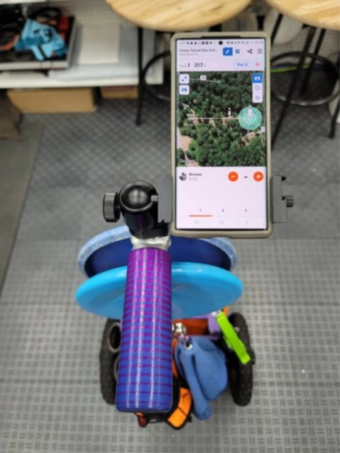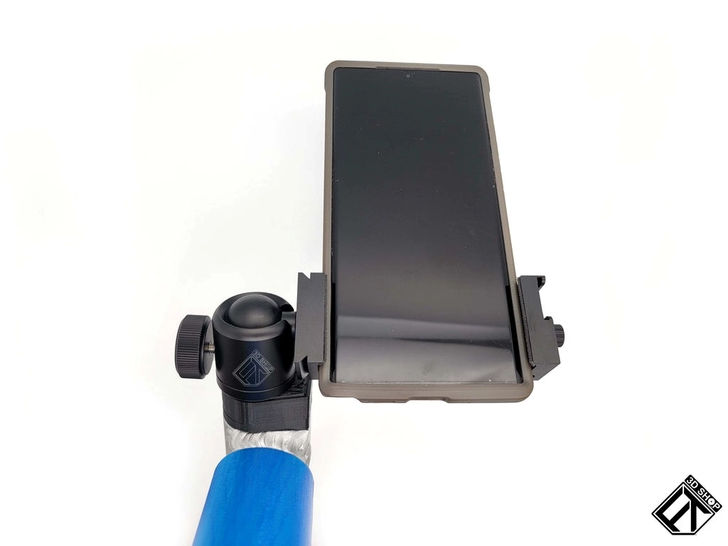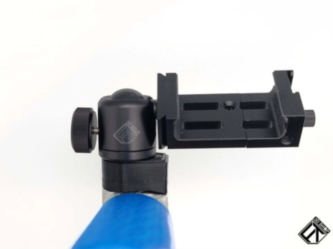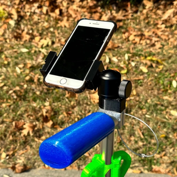 From the FlighTowel 3D Shop comes an impressive addition for the Zuca cart: the FlighTowel Cart Stud and Phone Mount. This setup is highly functional, starting with a custom-made base featuring a standard 1/4 20 stainless steel stud, which can attach various photo mounts. Its versatility is unmatched. Additionally, a robust ball mount allows for swiveling the phone to any desired position, easily switching between portrait and landscape modes with a simple knob twist.