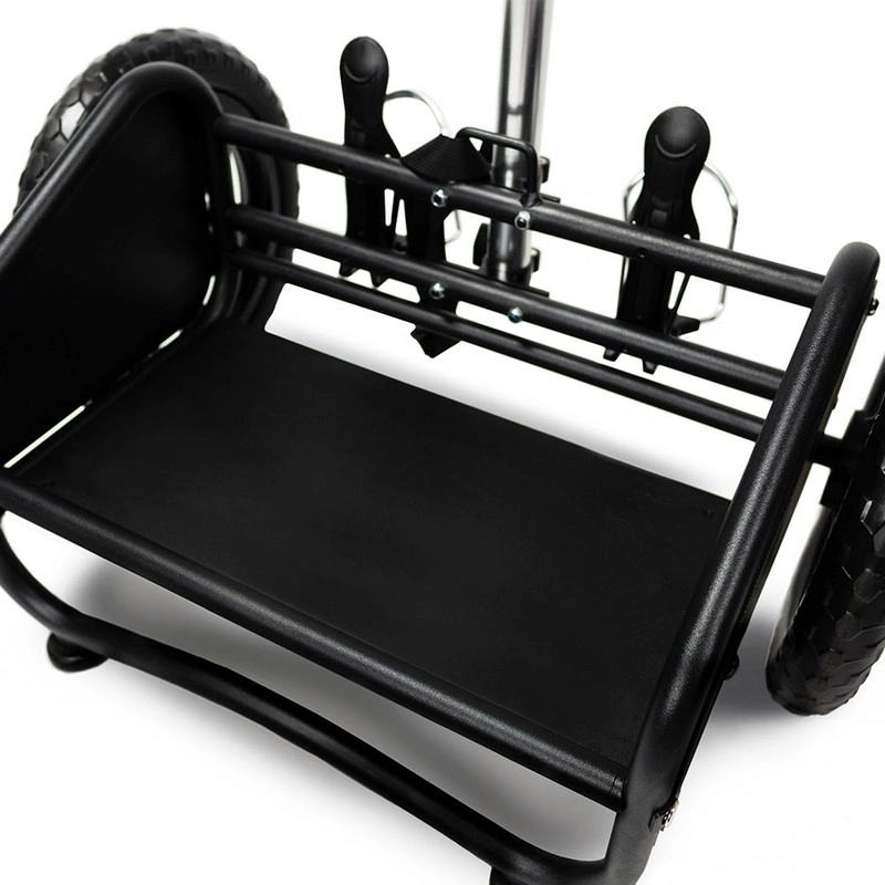 The Rover cart has a low center of gravity, causing a smooth, balanced ride. This cart weights just under 11 lbs, making it a light weight option for taking it on the go. It has a powder coat finish and foam tires that will never go flat.