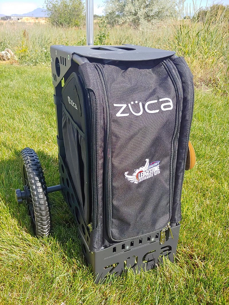 The Zuca cart is the perfect solution for tournament disc golf. This cart has capacity for all of your backups and can hold more than 30 discs, plus water bottles, your sweatshirt, jacket, disc retrievers, and umbrellas.