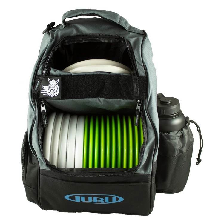 The Guru Berserk is an excellent introductory backpack. This bag features a main compartment, putter pouch, water bottle pouch, and a side zipper pocket. It also has a strip of the loop side of Velcro for you to customize the bag and add your desired patches.